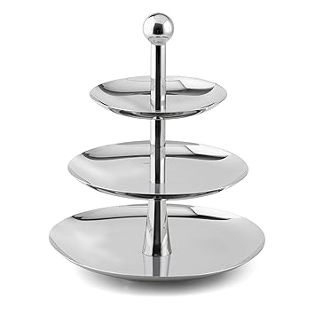 Etageren – Durchmesser: unten 40cm, Durchmesser: mitte 35cm, Durchmesser: oben 30cmHöhe 45cm. Kleine Köstlichkeiten nicht nur der italienischen Küche lassen sich auf der schönen Etagere glänzend präsentieren. Von den drei Edelstahltellern mit einem .
