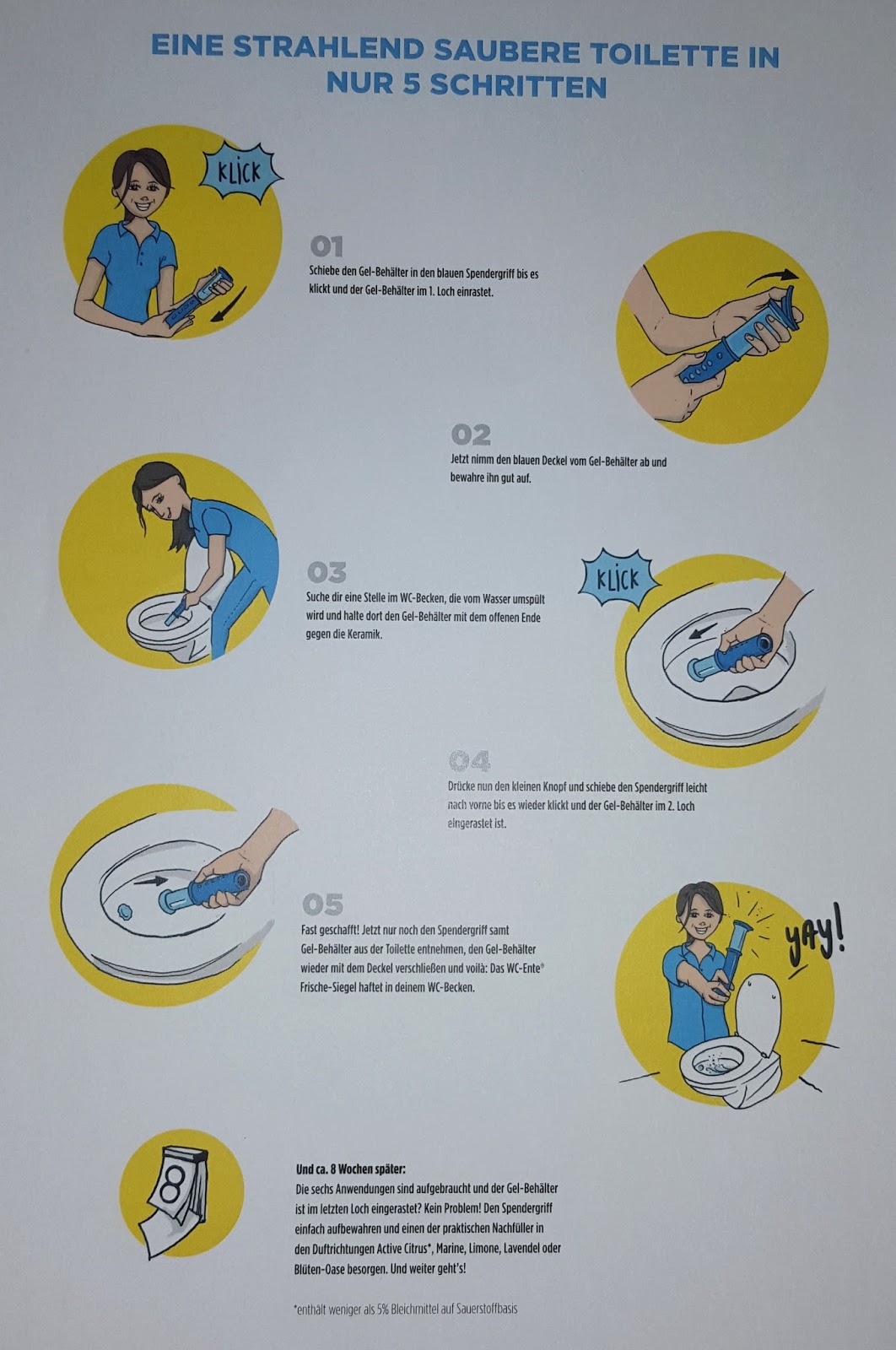 Heute gibt es mal wieder einen Bericht abseits von Beauty und anderen schmückenden Dingen. Aus Neugierde habe ich mich für einen Produkttest mit dem WC-Ente Frische-Siegel beworben. Für das WC-Ente Team durfte ich das WC-Ente Frische-Siegel Limone. Ich persönlich kannte das WC-Ente Frische Siegel nur aus der Werbung und. Die Gebrauchsanweisung zur Anwendung ist an einer denkbar . Vor einiger Zeit wurden Produkttester für das Wc Ente Frische Siegel gesucht, worauf ich mich natürlich beworben habe.